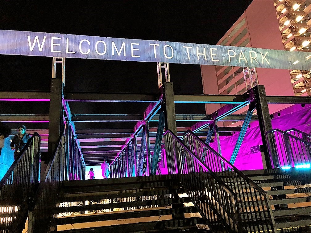 There was an outdoor area at the LINQ Lot with a specially constructed bridge just for re:Invent to cross the road.