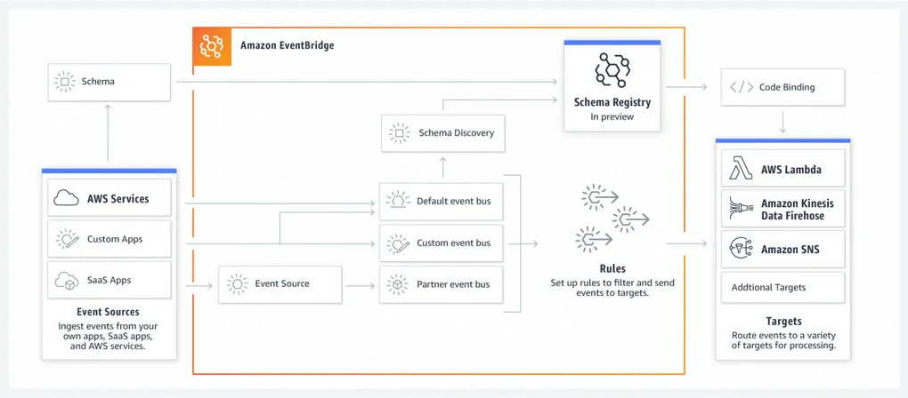 Today, AWS announces the preview of Amazon EventBridge schema registry and discovery. These are new developer tool features, which allow you to automatically find events and their structure, or schema, and store them in a shared central location. This makes it faster and easier to build event-driven applications. You can access the registry and generate […]